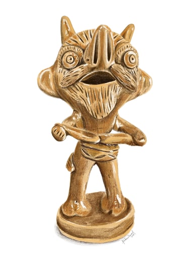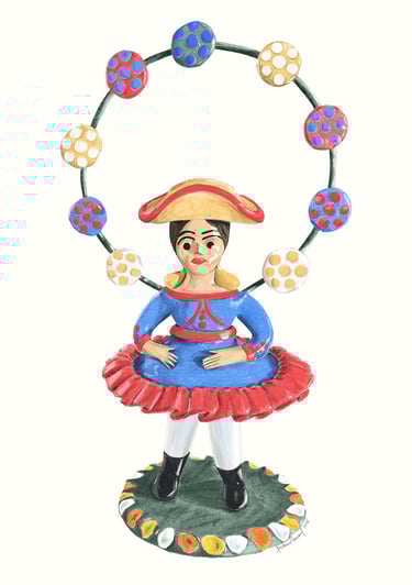 "Nine artists immersed themselves in the enchanting universe of traditional ceramics and created works inspired by Irmãs Flores, Irmãos Baraça, António Ramalho, Mistério, and Júlia Côta. From Estremoz to Barcelos, the figurative pieces ["figurados"] gained a new life, where popular symbols were reinterpreted and exalted by the gaze of our illustrators!"