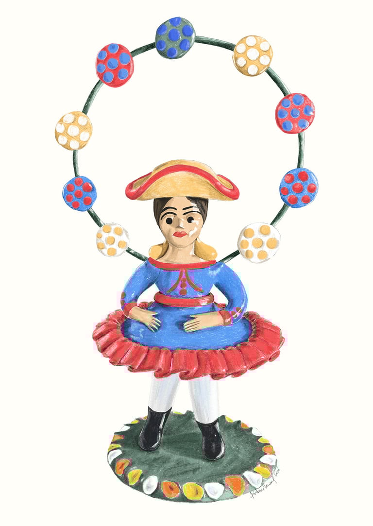 "Nove artistas mergulharam no universo encantado da cerâmica tradicional e criaram obras inspiradas em nomes como Irmãs Flores, Irmãos Baraça, António Ramalho, Mistério e Júlia Côta. De Estremoz a Barcelos, os figurados ganharam uma nova vida, onde os símbolos populares foram reinterpretados e exaltados pelo olhar dos nossos ilustradores!"